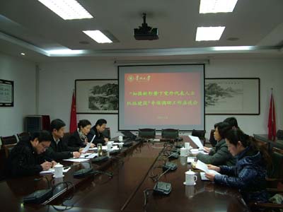 3月6日下午,在我校北校区行政楼第一会议室,省委统战部副部长、省社会主义学院党组书记何萍率省委统战部六处处长李立等一行到我校就加强新形势下党外代表人士队伍建设工作进行专题调研。调研座谈会由我校党委副书记冯晓宪主持,学校相关职能部门负责人参加了会议。何萍副部长传达了《中共中央关于加强新形势下党外代表人士队伍建设的意见》(中发[2012]4号)文件有关精神。校党委统战部部长王慧向调研组汇报了我校党外代表人士队伍建设情况,总结了我校党外代表人士队伍建设工作的主要做法,也提出了我校党外代表人士队伍建设面临的困难、问题并提出了工作建议。我校党委组织部副部长胡小兵作了补充发言。调研组一行充分肯定了我校在党外代表人士队伍建设工作中取得的成绩,并希望我校能发现培养输送更多的优秀党外人才,使他们更好的服务贵州经济社会发展。