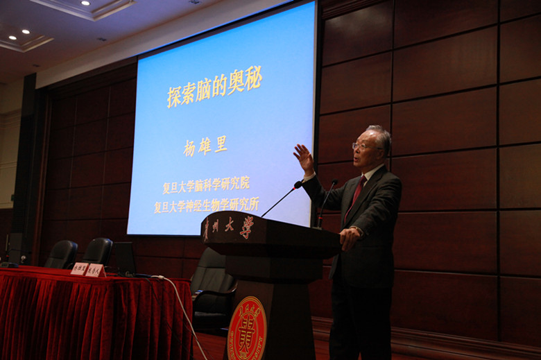 杨雄里院士给大家带来的是“探索脑的奥秘”的精彩报告,他用精美的图片、精炼的语言给大家讲述了大脑皮层神经细胞电活动过程、阐述了遗传和外界环境对神经系统的影响,并通过抑郁症、神经分裂症、老年痴呆症患者等案例,比较病患者大脑组织与正常人的大脑组织的不同并发现新的难题。他说:“揭示脑的奥秘是自然科学家最大的挑战之一,蕴含着深厚的哲学意义,对社会发展有不可估量的影响”我们虽然取得了很大的成就,但在脑的奥秘探索上还需不断努力。他引用著名政治家、演讲家丘吉尔的话:“这并非终结,甚至不是终结的开端,但是,也许这是一个开端的终结”勉励大家继续探索。