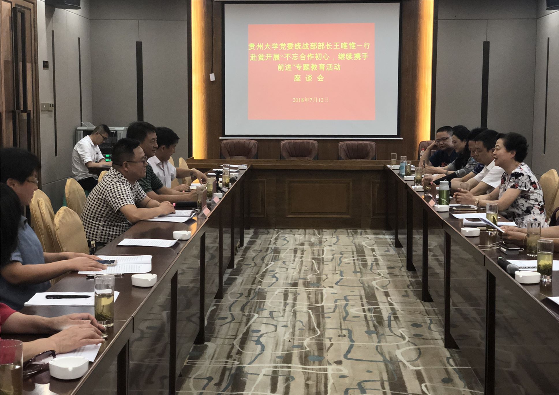 瓮安县副县长(挂职)、我校农工党二支部副主委田蒙奎主持召开座谈会,瓮安县委常委、宣传部部长夏吉友介绍了瓮安经济社会发展情况及脱贫攻坚典型事迹,王唯惟作主题发言,双方围绕“瓮安县经济社会发展”、“助力脱贫攻坚”、“高校成果服务地方经济社会”等内容进行交流座谈。