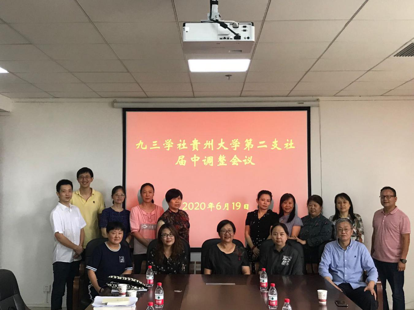 九三学社贵州大学第二支社第九届委员会进行届中调整 (来源:九三学社贵州省委) 2020年6月19日下午,九三学社贵州大学第二支社第九届委员会届中调整会议在贵州大学西校区贵州大学党委统战部会议室举行。会议选举产生了新的支社主委,廖霞同志当选。九三学社贵州大学第二支社社员、贵州大学党委统战部、九三学社贵州省委组织处有关同志参加会议。(九三学社贵州省委 张羽)