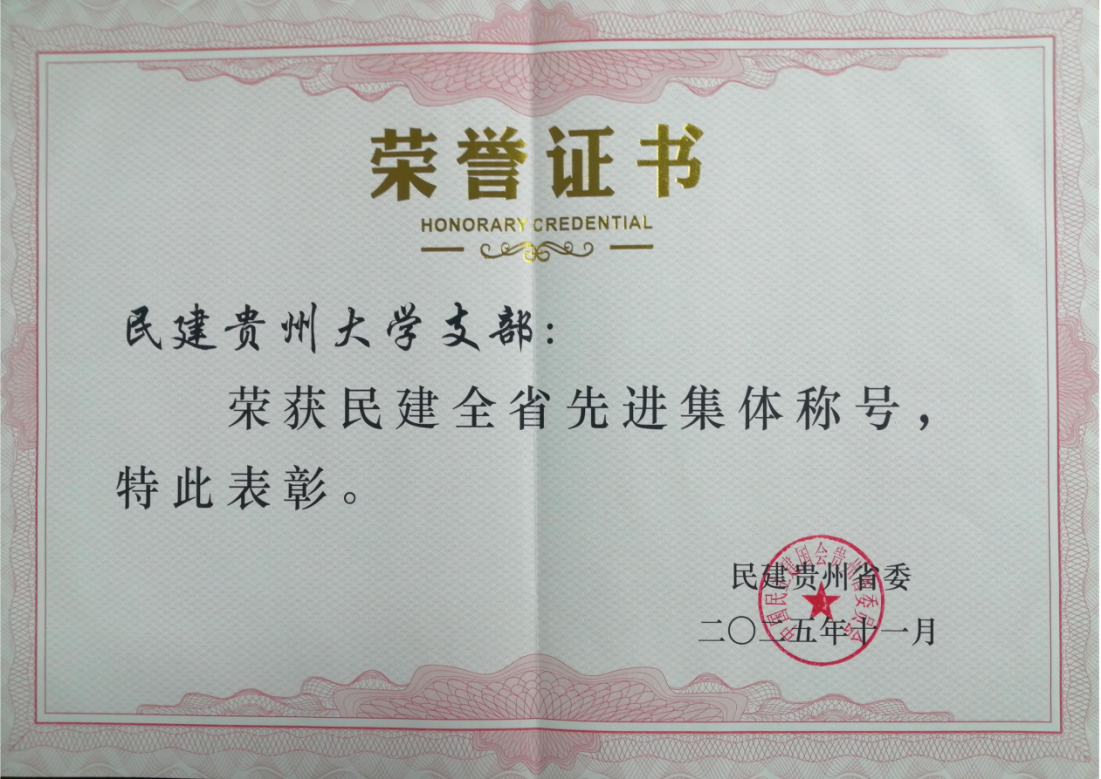 民建贵州大学支部荣获“民建全省先进集体”表彰,民建贵州省委理论研究委员会委员、民建贵州大学支部会员、贵州大学生命科学学院副教授杨贵利荣获“民建全省优秀会员”表彰。