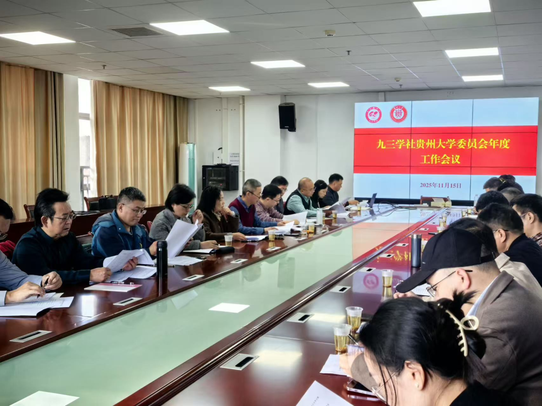 2025年11月15日,九三学社贵州大学委员会在贵州大学西校区崇厚楼812会议室召开年度工作会议。会议由九三学社贵州大学委员会主委、贵州师范大学副校长吴复忠主持,九三学社贵州大学委员会各支社主委、副主委,社员代表和新社员共42人参加会议。