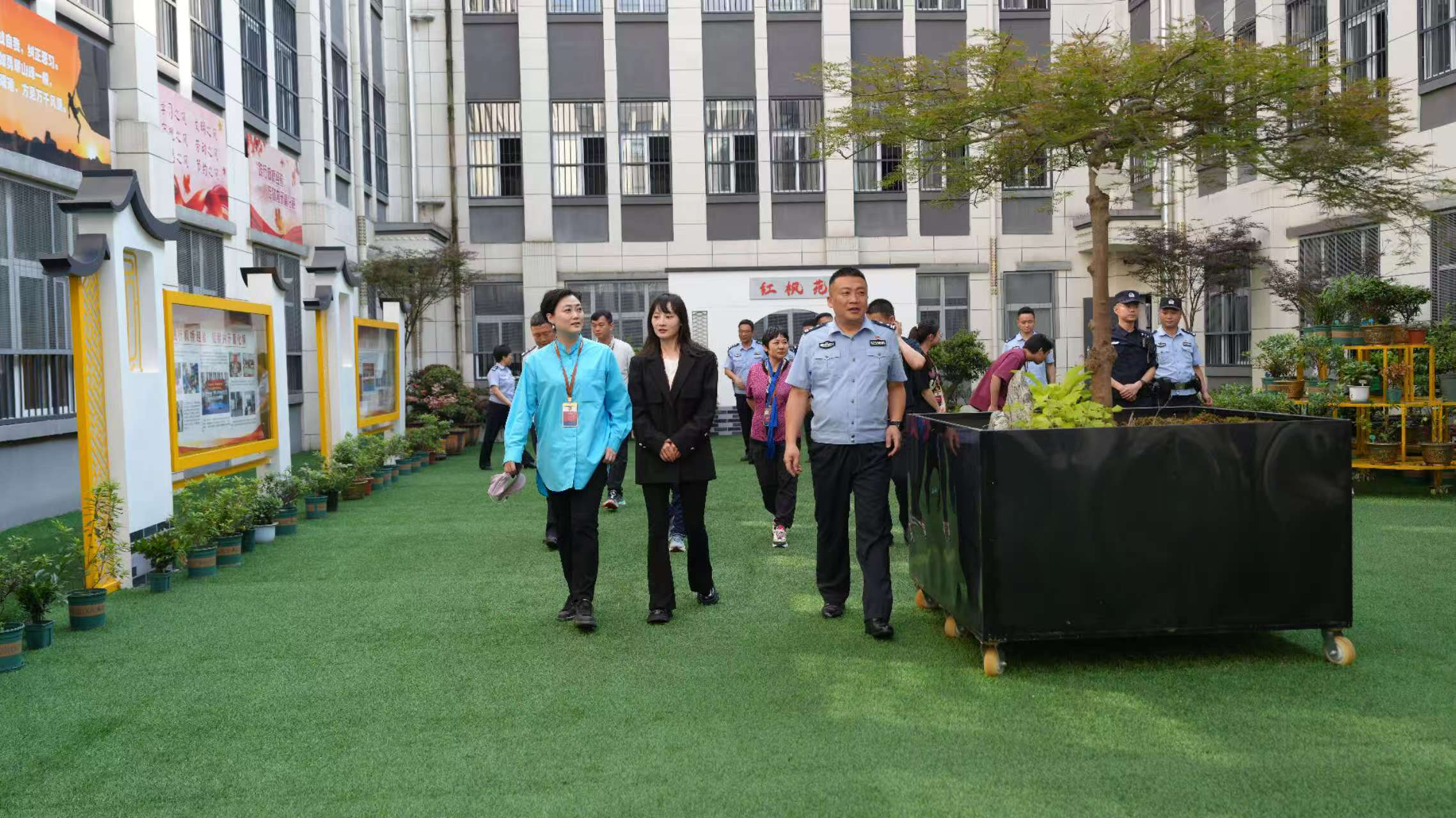 民盟贵州大学委员会艺术支部发挥专业特长,深度参与清镇监狱“红枫文化”“竹文化”特色品牌建设。2025年9月24日,助力清镇监狱举办监狱开放日活动,精心编排并上演“用心用情化心结 法治领航树新生”主题文艺汇演。汇演节目紧扣教育改造主题,表演真挚动人,营造出温暖共情的氛围,赢得现场阵阵掌声,以艺术感染力为服刑人员传递新生希望。汇演结束后,盟员们走进“红枫文化”“竹文化”主题监区沉浸式体验,深入了解文化元素融入监管环境的实践路径,将“枫红似火、寄意新生”的积极导向与“破土向上、中通外直、节节攀升”的竹品精神融入帮教全过程,凸显文化教育在服刑人员行为矫治与心灵重塑中的重要作用,形成“文化平台润心、艺术教育塑人”的特色路径。