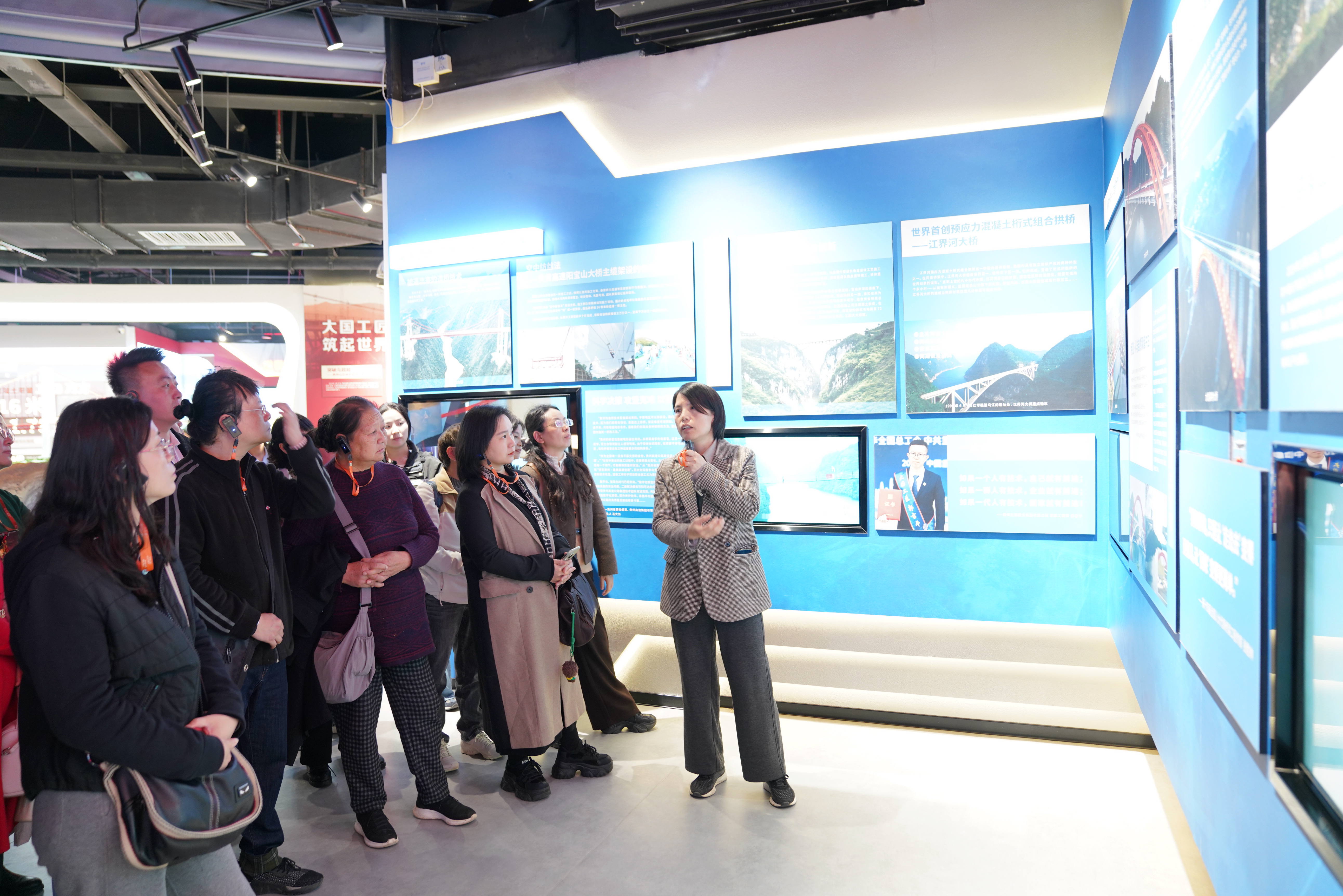 张胜林聚焦花江峡谷大桥等世界级工程,详细介绍了贵州桥梁建设发展史、世界级大桥建设成就与技术创新,以及坝陵河大桥、平塘大桥、花江峡谷大桥等典型工程展区及桥梁建设中的技术突破,分享了新质生产力、数字化、绿色低碳理念在桥梁建造中的实践应用,让大家深入了解贵州交通发展与乡村振兴、高质量发展深度融合的丰硕成果,深刻体会科技创新对贵州交通发展的核心赋能作用。随后,大家登临坝陵河大桥,近距离感受超级工程的磅礴气势。